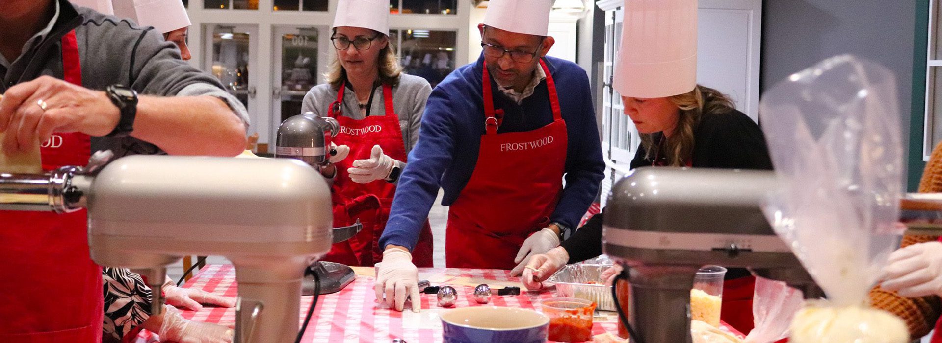 For a fun team building event, we offer our popular Lasagna-making Give Back program, which you can add onto any of our events. With instruction from our culinary team, you will work in teams and learn how to make pasta sheets, cheese filling, and then assemble a lasagna. The finished lasagnas, each providing a meal for eight people, will be delivered to a local food pantry. You will receive a tax donation from that food pantry.